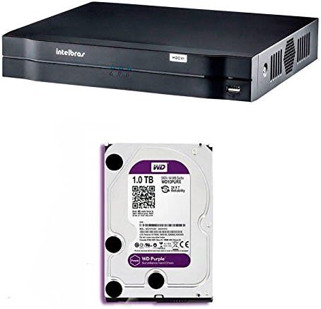 படம் 1.2: Intelbras MHDX-1004 DVR with 1TB WD Purple hard drive. This image illustrates the Intelbras MHDX-1004 DVR unit alongside a 1TB WD Purple surveillance hard drive, indicating the pre-installed storage solution.